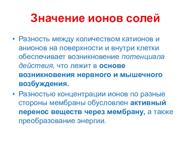 Слайд 31Значение ионов солей