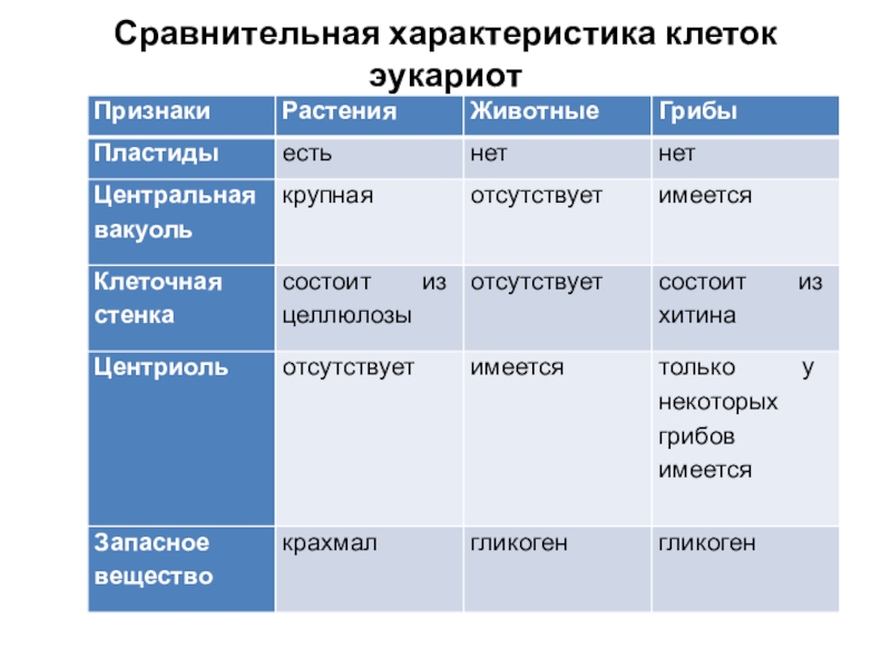 Слайд 21Сравнительная характеристика клеток эукариот