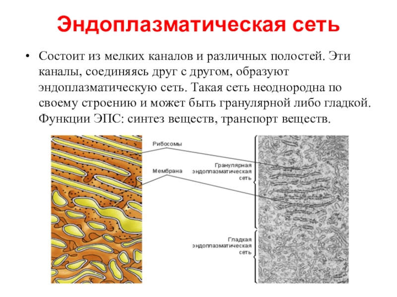Слайд 8Эндоплазматическая сеть