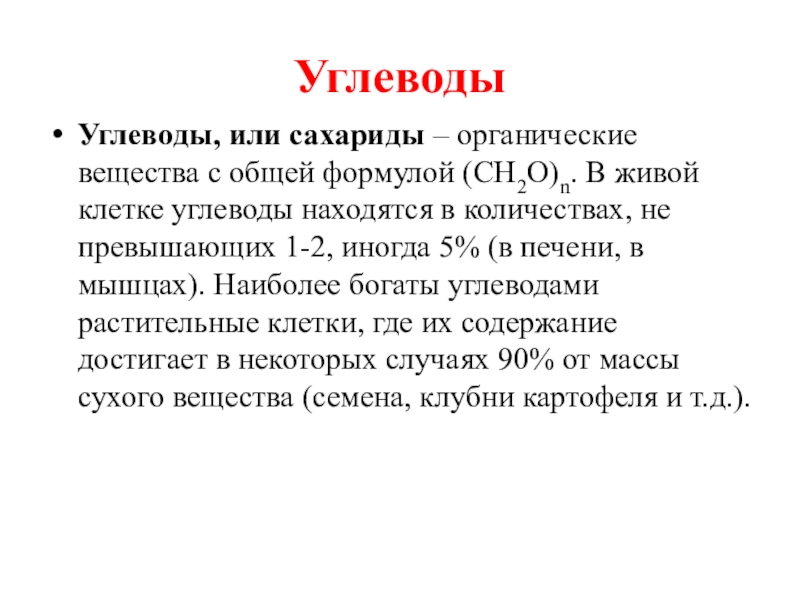 Углеводы, или сахариды – органические вещества с общей формулой (СН2О)n. В
