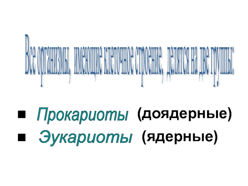 Все организмы, имеющие клеточное строение, делятся на две группы: