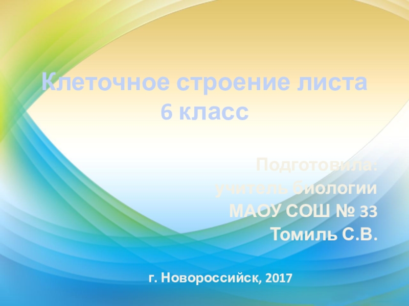Клеточное строение листа 6 классПодготовила:учитель биологииМАОУ СОШ № 33Томиль С.В.г. Новороссийск, 2017