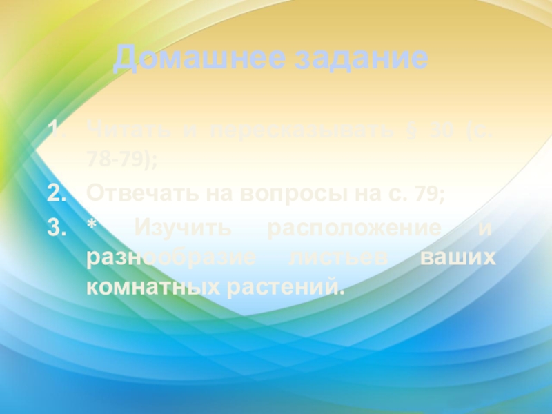 Домашнее заданиеЧитать и пересказывать § 30 (с. 78-79);Отвечать на вопросы на с. 79;* Изучить расположение и разнообразие