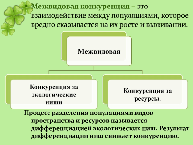 конкуренция) или разных видов (межвидовая конкуренция) за необходимые для жизнедеятельности, но ограниченные ресурсы среды.