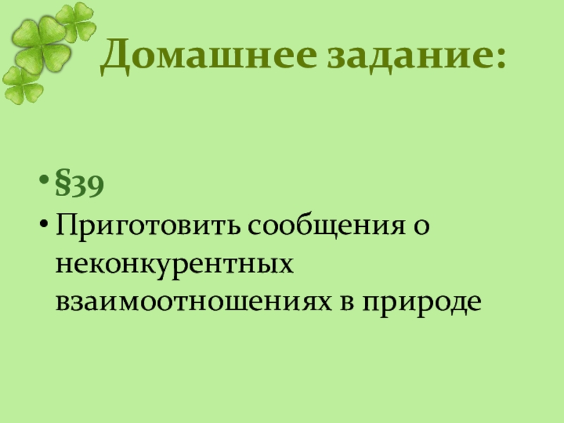 Приготовить сообщения о неконкурентных взаимоотношениях в природе