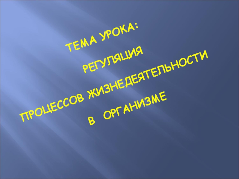 ТЕМА УРОКА: РЕГУЛЯЦИЯ ПРОЦЕССОВ ЖИЗНЕДЕЯТЕЛЬНОСТИ В ОРГАНИЗМЕ