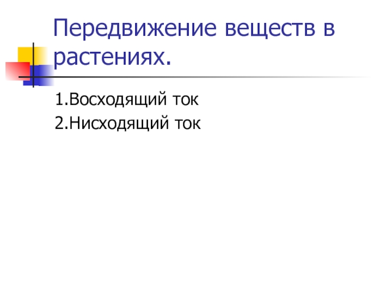 Передвижение веществ в растениях.1.Восходящий ток2.Нисходящий ток