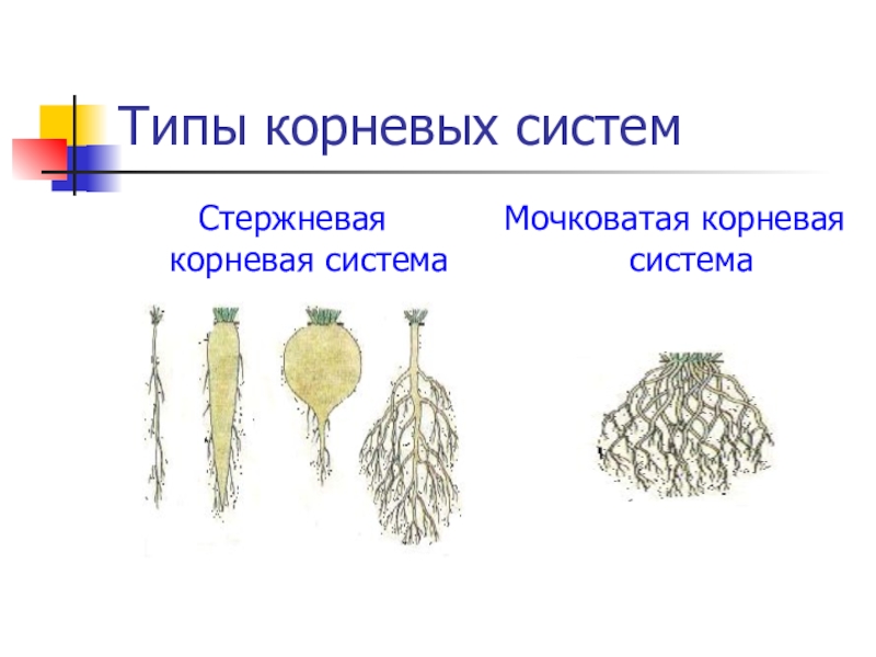Типы корневых системСтержневая корневая системаМочковатая корневая система
