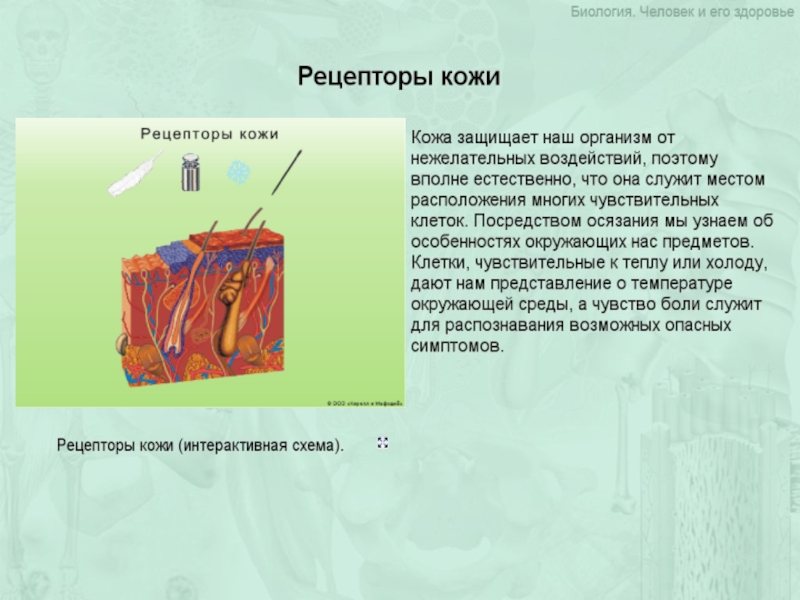 Температура окружающей среды воспринимает-ся с помощью рецепторов, расположенных в коже.