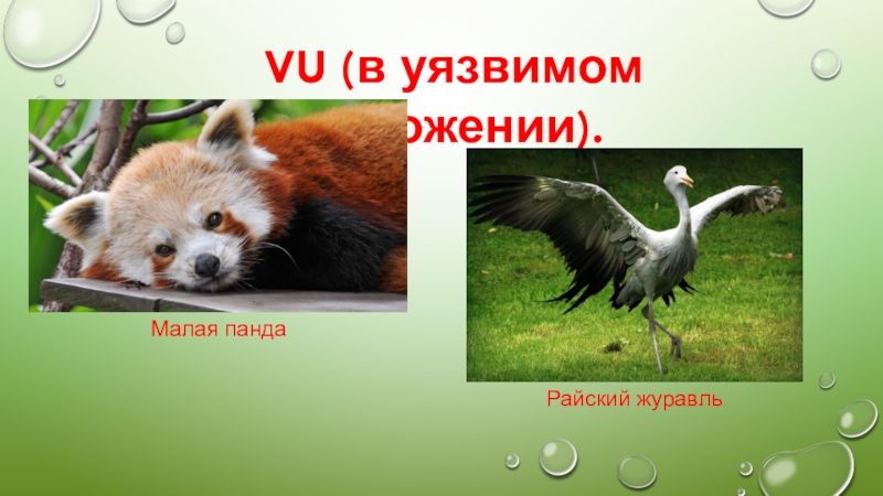 VU (в уязвимом положении).Малая пандаРайский журавль