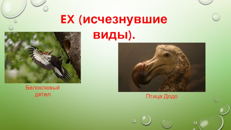 EX (исчезнувшие виды).Белоклювый дятелПтица Додо