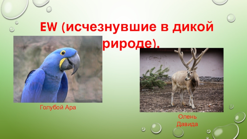 EW (исчезнувшие в дикой природе).Голубой АраОлень Давида