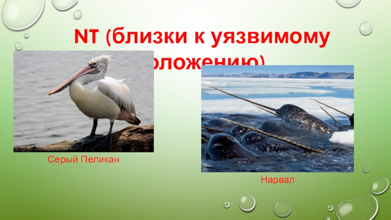 NT (близки к уязвимому положению).Серый ПеликанНарвал