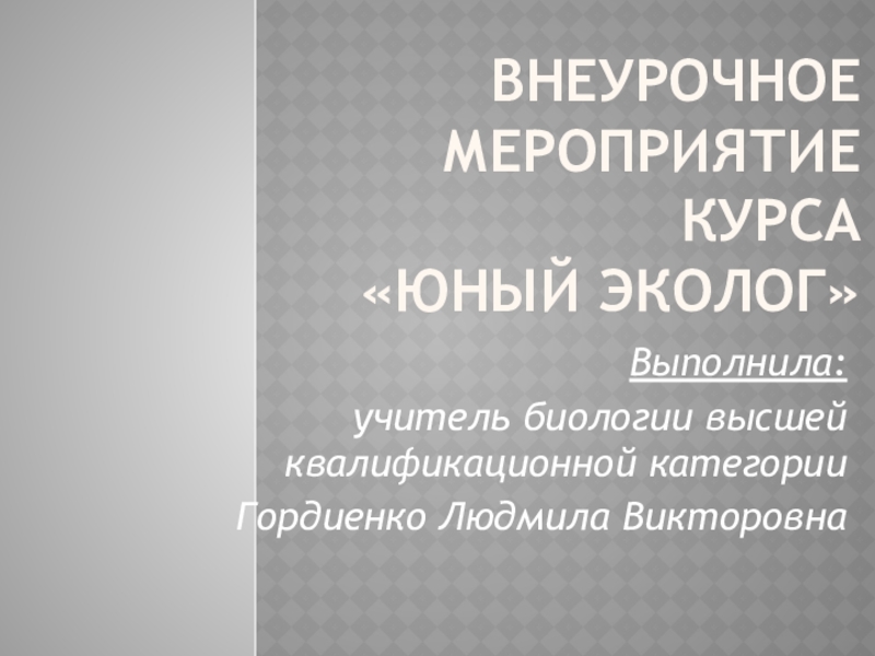 Внеурочное мероприятие курса  «Юный эколоГ»Выполнила:учитель биологии высшей квалификационной категорииГордиенко Людмила Викторовна