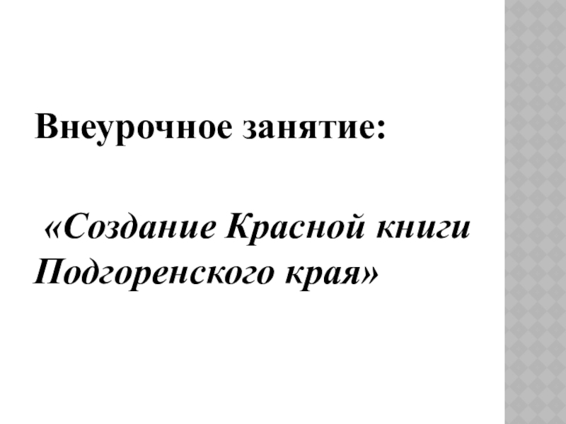 Внеурочное занятие: «Создание Красной книги Подгоренского края»