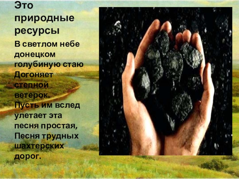 Это природные ресурсыВ светлом небе донецком голубиную стаю  Догоняет степной ветерок.  Пусть им вслед улетает эта песня