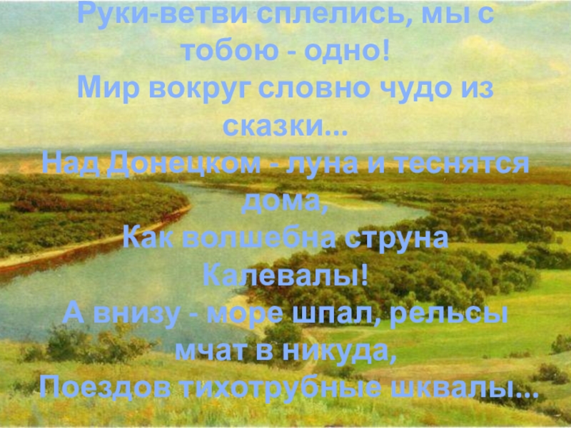 Слайд 5Руки-ветви сплелись, мы с тобою - одно!  Мир вокруг словно чудо из