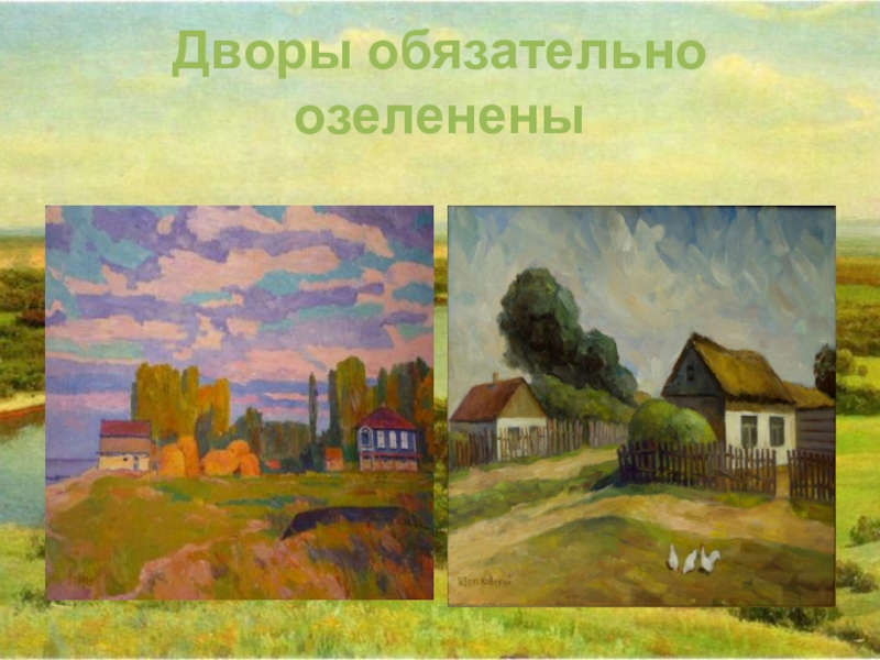 Слайд 4Дворы обязательно озеленены