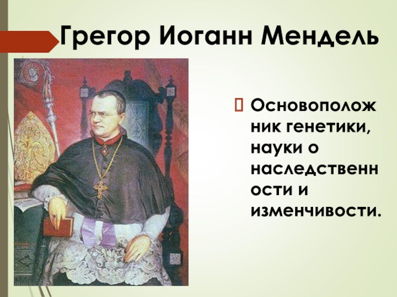 Грегор Иоганн МендельОсновоположник генетики, науки о наследственности и изменчивости.