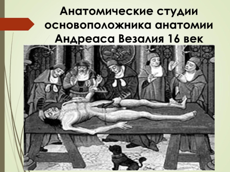 Слайд 9Анатомические студии основоположника анатомии Андреаса Везалия 16 век