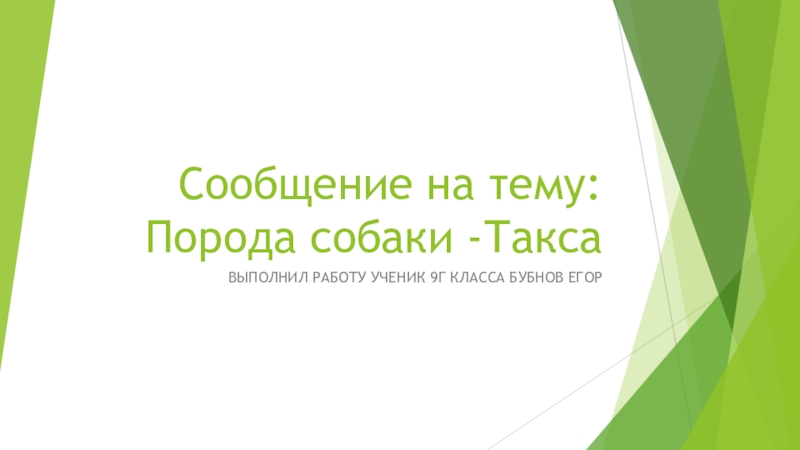 Слайд 1Сообщение на тему: Порода собаки -Такса