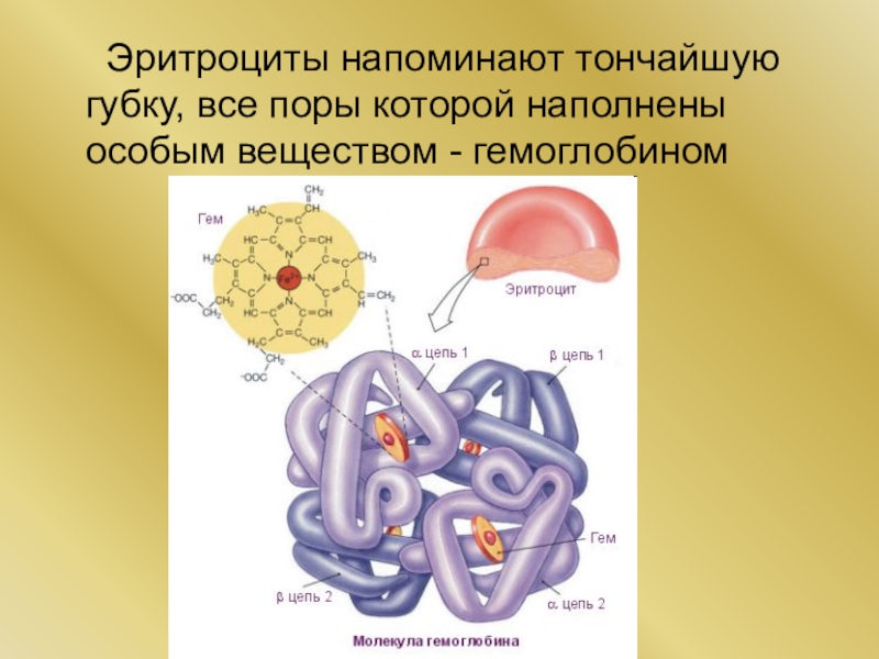 Слайд 8 Эритроциты напоминают тончайшую губку, все поры которой наполнены