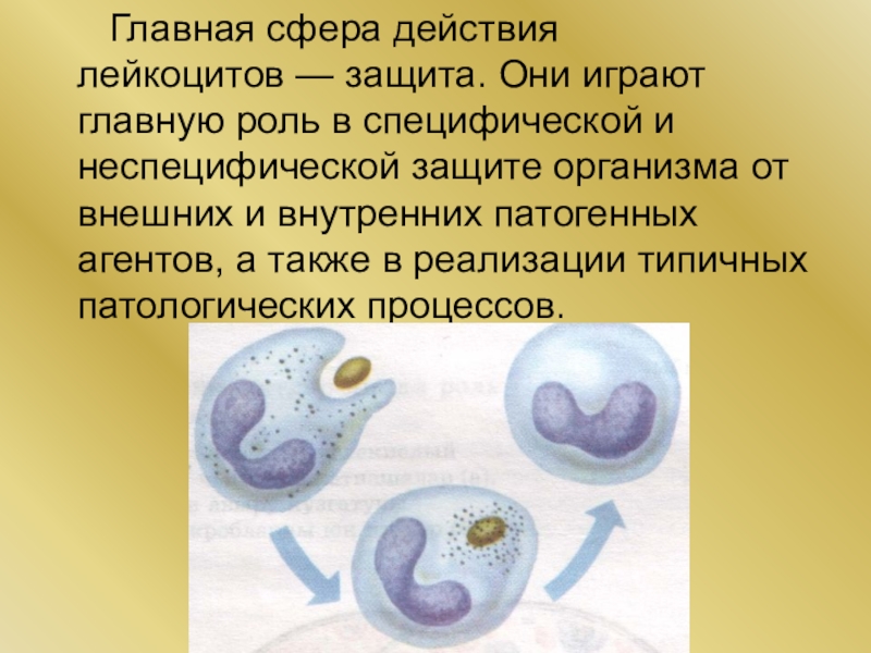Слайд 13 Главная сфера действия лейкоцитов — защита. Они играют главную