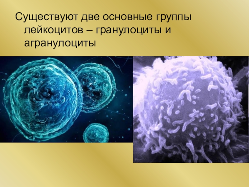 Слайд 12Существуют две основные группы лейкоцитов – гранулоциты и агранулоциты