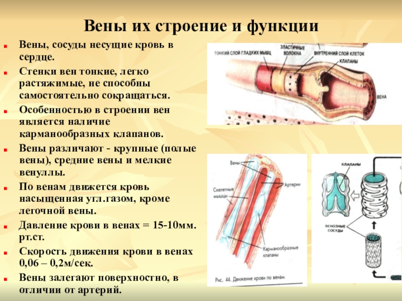Особенностью в строении вен является наличие карманообразных клапанов.