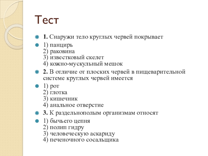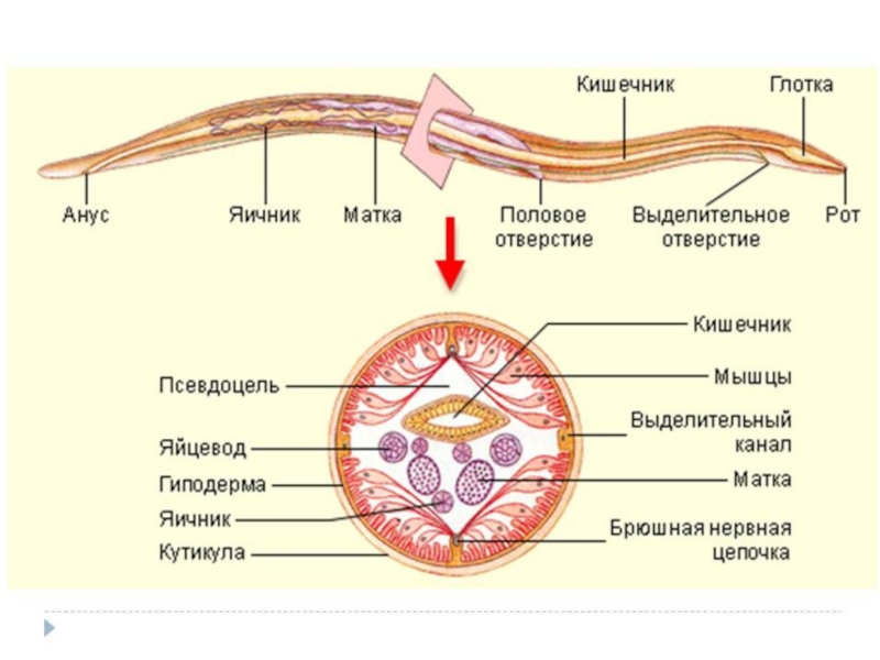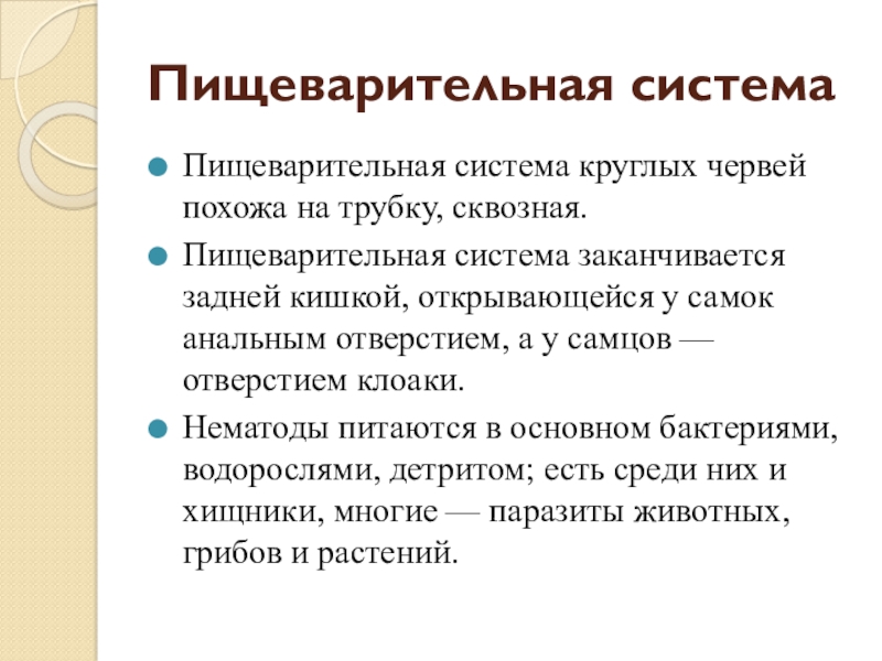 Пищеварительная система круглых червей похожа на трубку, сквозная.