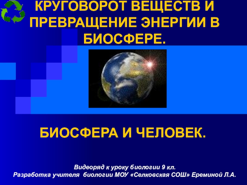Разработка учителя биологии МОУ «Селковская СОШ» Ереминой Л.А.