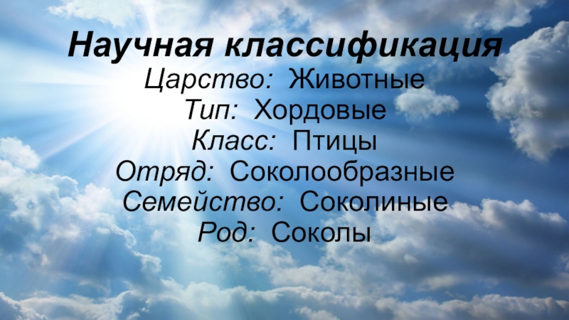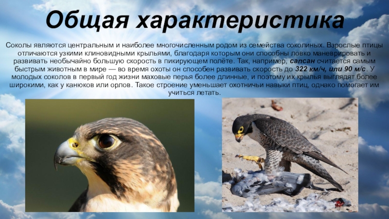 Слайд 2Со́колы (лат. Falco) — род хищных птиц семейства соколиных, широко распространённых