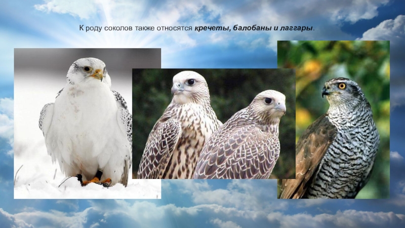 Слайд 5К роду соколов также относятся кречеты, балобаны и лаггары.