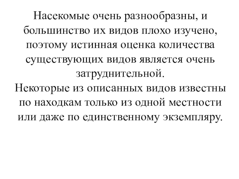 Слайд 5Насекомые очень разнообразны, и большинство их видов плохо изучено, поэтому истинная