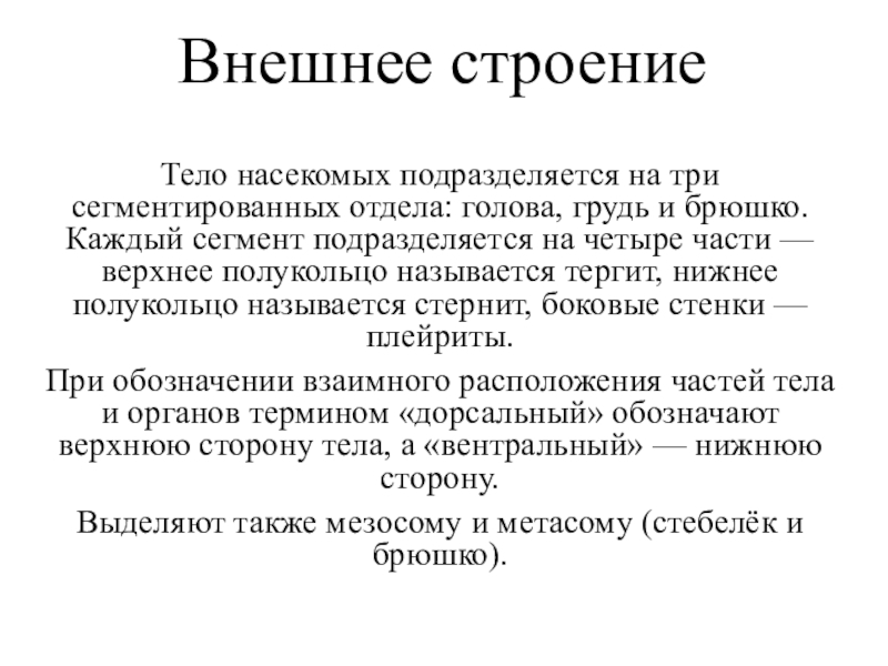 Тема. Внешнее строение насекомого.