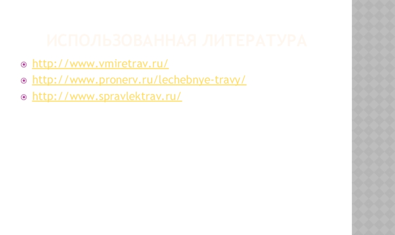 Слайд 22 ИСПОЛЬЗОВАННАЯ ЛИТЕРАТУРА