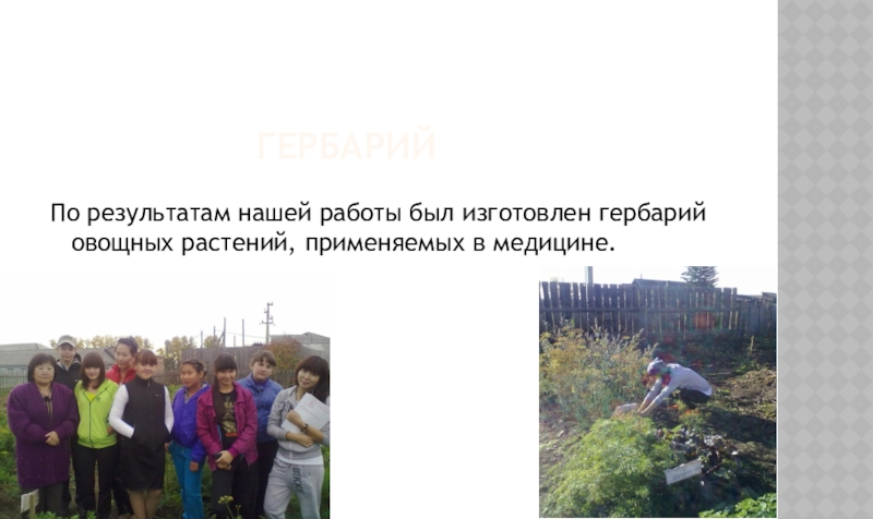 По результатам нашей работы был изготовлен гербарий овощных растений, применяемых в медицине.