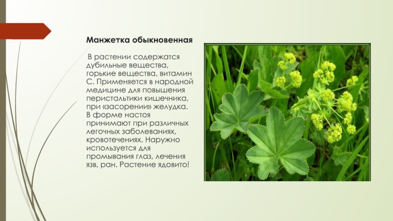 Слайд 16Манжетка обыкновенная