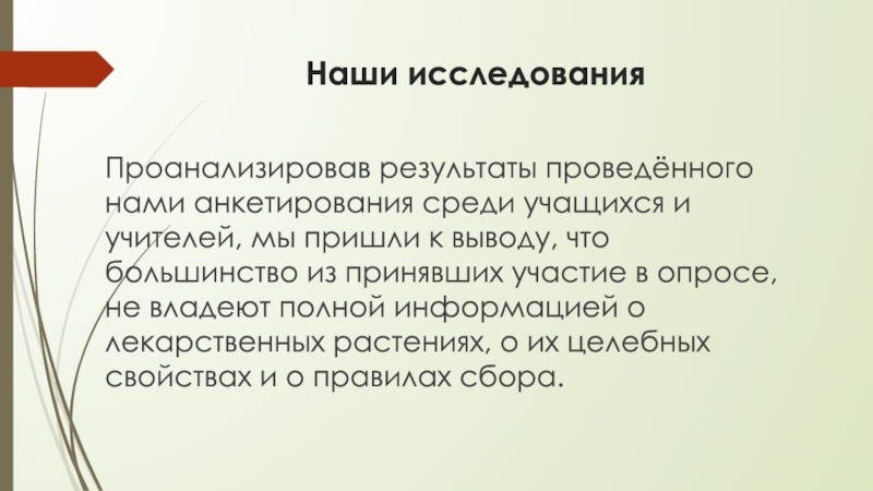 пришли к выводу, что большинство из принявших участие в опросе, не владеют полной информацией о лекарственных растениях, о их целебных свойствах и о правилах сбора.