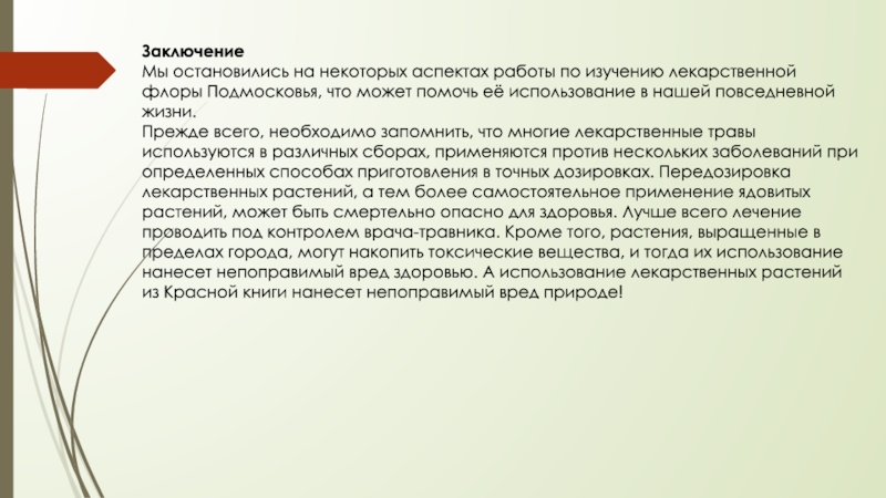 Мы остановились на некоторых аспектах работы по изучению лекарственной флоры Подмосковья,