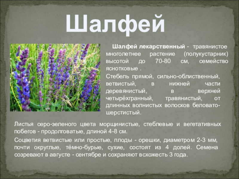 Листья серо-зеленого цвета морщинистые, стеблевые и вегетативных побегов - продолговатые, длиной 4-8 см.