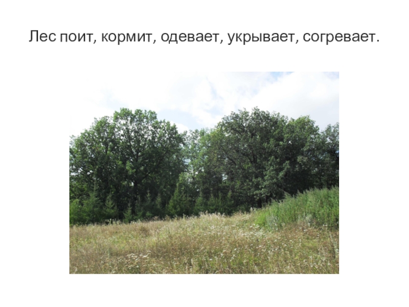 Слайд 3Лес поит, кормит, одевает, укрывает, согревает.