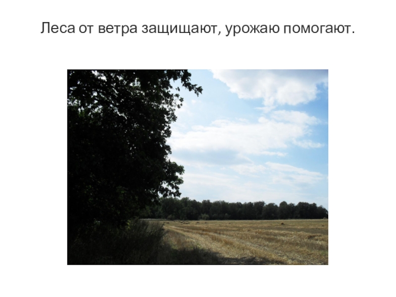 Слайд 4Леса от ветра защищают, урожаю помогают.
