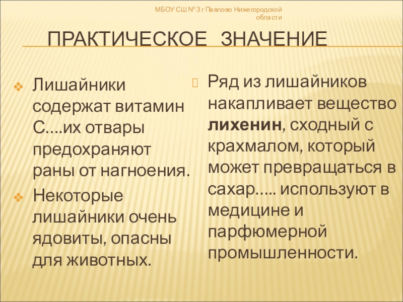 Ряд из лишайников накапливает вещество лихенин, сходный с крахмалом, который может превращаться в сахар….. используют в медицине и парфюмерной промышленности.