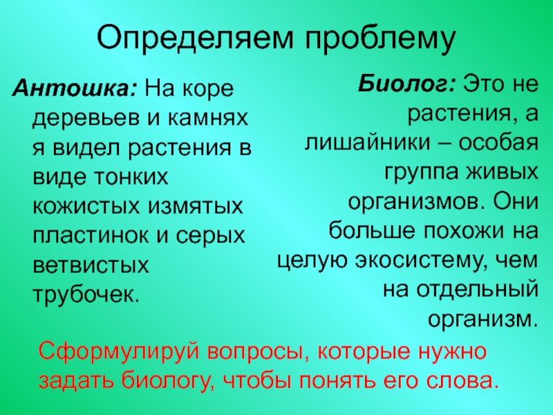 Сформулируй вопросы, которые нужно задать биологу, чтобы понять его слова.
