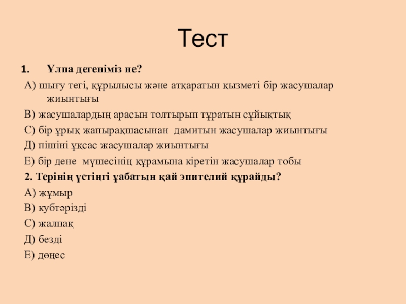 Слайд 2ТІРІ ЖҮЙЕНІҢ ҚҰРЫЛЫМ ДЕҢГЕЙЛЕРІ