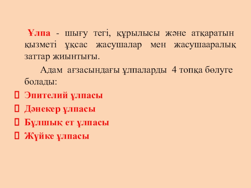 Ұлпа - шығу тегі, құрылысы және атқаратын қызметі ұқсас жасушалар мен