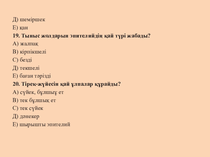 Слайд 143. Тыныс жолдарын эпителийдің қай түрі жабады?