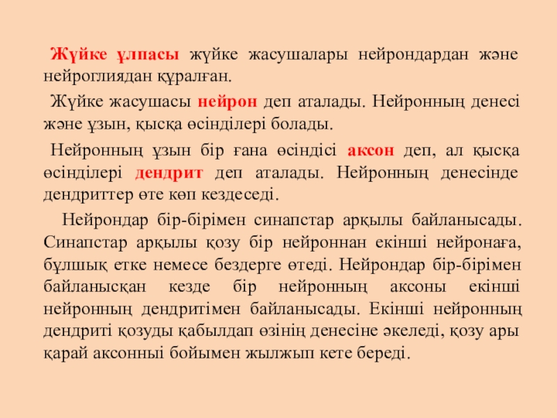 нейрон деп аталады. Нейронның денесі және ұзын, қысқа өсінділері болады.