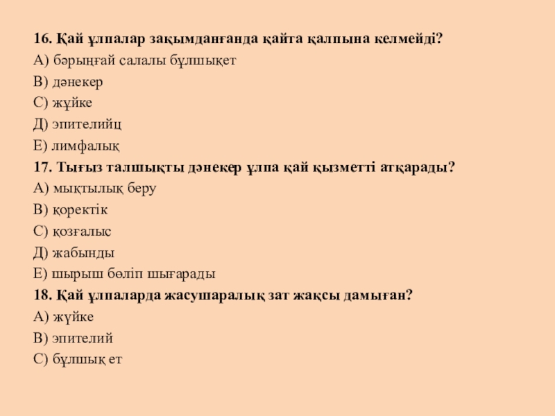 Слайд 1916. Қай ұлпалар зақымданғанда қайта қалпына келмейді?